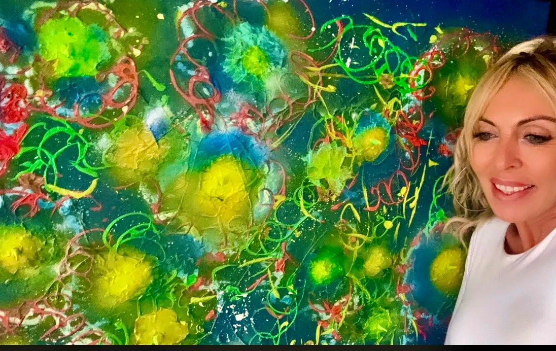 Opera realizzata in colori acrilici e filo effetto metallo su tela